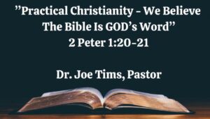 We believe the Bible from Genesis 1:1 to Revelation 22:21 as the verbally inspired, infallible Word of God (2 Peter 1:20-21).
